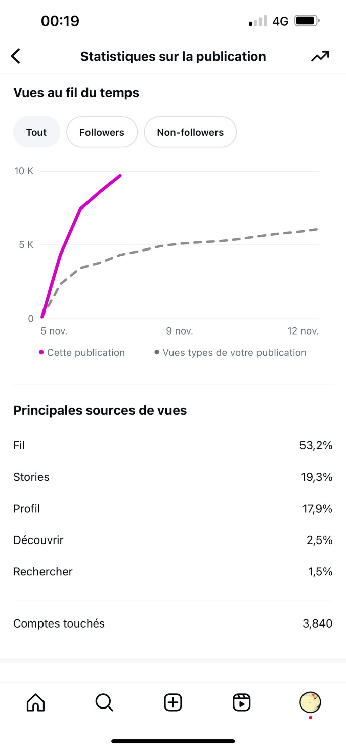 Instagram fournit des estimations de vues pour chaque type de publication.